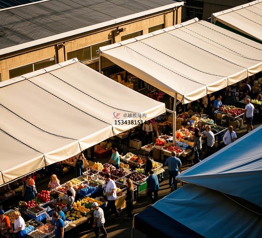 在美學規(guī)劃上,膜結構頂棚更是獨具魅力。它擺脫了傳統(tǒng)頂棚的刻板造型,以流暢的曲線、共同的造型為農貿商場增添了現(xiàn)代時髦氣味。色彩豐厚的膜材可根據(jù)商場整體風格與周邊環(huán)境進行挑選調配,或是新鮮明快的色彩營建舒適氛圍,或是與周邊修建色彩呼應,融入城市景象。比方,某坐落旅游景區(qū)鄰近的農貿商場,選用了造型共同、色彩柔軟的膜結構頂棚,與景區(qū)的天然風光相得益彰,成為吸引游客與本地居民的特色場所,提升了商場的吸引力與城市形象。