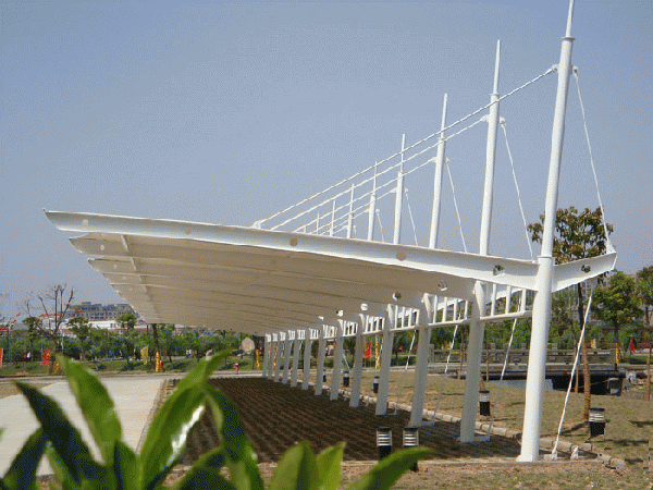 膜結(jié)構(gòu)車棚是現(xiàn)在很多景區(qū)及繁華地段都可以看到的一種新型車棚,它的造型優(yōu)美并且使用功能非常強(qiáng)大,很多不太了解膜結(jié)構(gòu)的客戶總會(huì)對(duì)膜材料及材料廠家沒(méi)有足夠的信心,擔(dān)心價(jià)格高,質(zhì)量無(wú)法保障,今天我們教您一招,讓您快速識(shí)別膜結(jié)構(gòu)材質(zhì)的好壞!膜結(jié)構(gòu)材料的選擇很大程度取決于膜結(jié)構(gòu)建筑物的功能、防火要求、壽命、設(shè)計(jì)和投資金額。所以選擇膜結(jié)構(gòu)材料要注意以下幾點(diǎn):