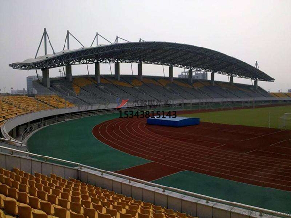 田徑場(chǎng)膜結(jié)構(gòu)遮陽棚特點(diǎn):田徑場(chǎng)膜結(jié)構(gòu)遮陽棚具有美觀大方、耐用性強(qiáng)、安裝便捷、節(jié)能環(huán)保、透光性好等特點(diǎn)。:膜結(jié)構(gòu)遮陽棚造型獨(dú)特、線條流暢,具有很強(qiáng)的現(xiàn)代感和藝術(shù)感,能夠與田徑場(chǎng)及周圍環(huán)境完美融合,提升場(chǎng)地的整體美觀度和檔次。采用了高強(qiáng)度、耐腐蝕的膜材,如聚四氟乙烯(PTFE)膜、聚酯滌綸(PET)薄膜等,可有效抵御紫外線、風(fēng)雨等自然因素的侵蝕,使用壽命長(zhǎng)達(dá)數(shù)十年。膜結(jié)構(gòu)遮陽棚的構(gòu)件在工廠預(yù)制完成后,運(yùn)輸?shù)浆F(xiàn)場(chǎng)進(jìn)行組裝和安裝,過程相對(duì)簡(jiǎn)單快捷,大大縮短了施工周期,減少了對(duì)田徑場(chǎng)正常使用的影響。其具有良好的隔熱保溫性能,能有效降低空調(diào)能耗;同時(shí),膜材表面光滑易清潔,減少了維護(hù)工作量,且使用壽命長(zhǎng),降低了更換頻率及維修費(fèi)用。可以讓自然光線充分照射進(jìn)來,使田徑場(chǎng)內(nèi)保持明亮,節(jié)省白天的照明能源,同時(shí)避免陽光直射導(dǎo)致的眩光,為運(yùn)動(dòng)員和觀眾提供舒適的視覺環(huán)境。