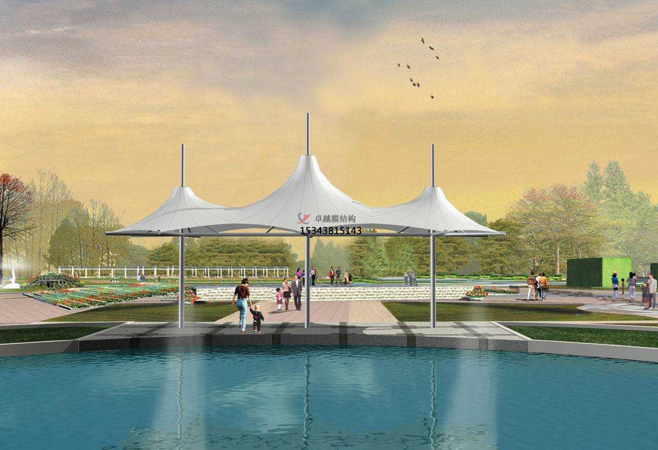 景觀膜結(jié)構(gòu)是建筑結(jié)構(gòu)中一個(gè)的更新發(fā)展起來的一種建筑的構(gòu)件。它是以性能的是優(yōu)良的織物是為材料的,或是向膜內(nèi)的是充氣, 由空氣的壓力是支撐的膜面,或是利用的是柔性鋼索的是將膜面的繃緊,從而是形成具有一定的剛度的、是能夠覆蓋大跨度的空間的建筑結(jié)構(gòu)的體系。