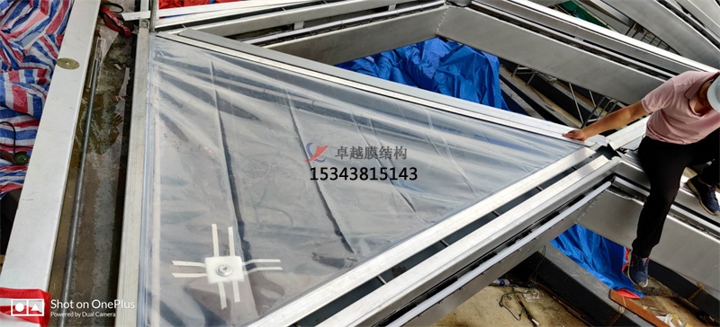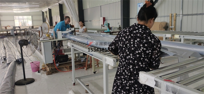 現(xiàn)場安裝測試第片膜材。帶充氣管道的項目。