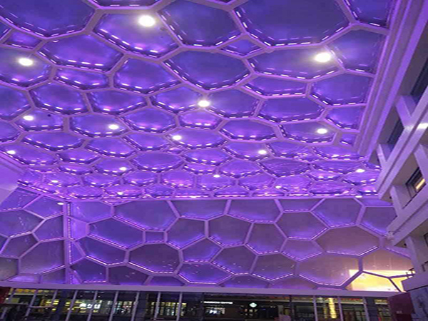 膜片制造和加工:根據(jù)設計要求,將ETFE膜片進行制造和加工。確保膜片的質量和尺寸符合要求,并與施工團隊密切合作,以確保適當?shù)陌惭b和連接。