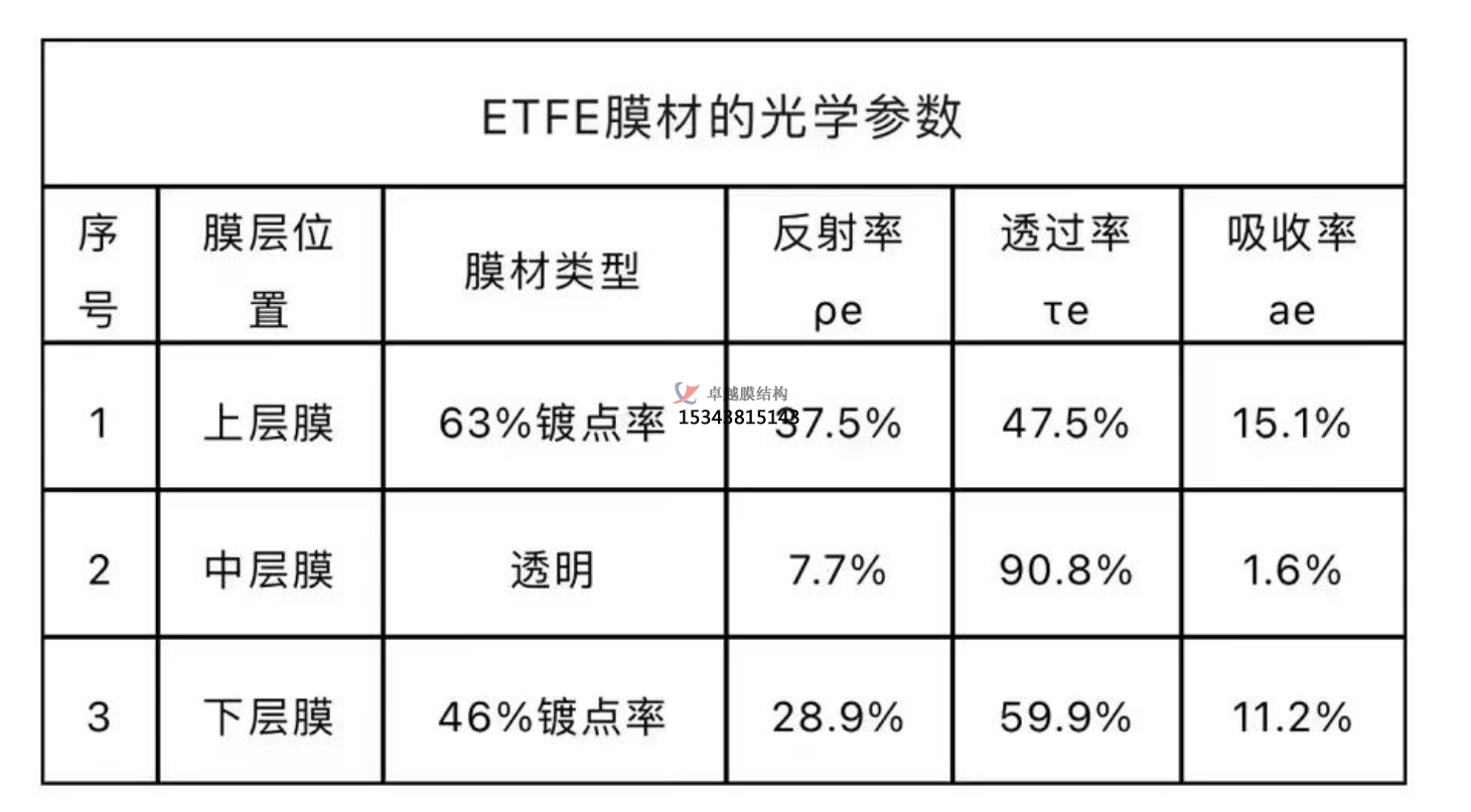 多層結(jié)構(gòu)設(shè)計(jì):設(shè)計(jì)多層 ETFE 膜結(jié)構(gòu)可以進(jìn)一步提高其隔熱光學(xué)性能。例如,將隔熱膜設(shè)計(jì)為 3 層氣枕模型,其可見光透過率為 41.04%,太陽光透射比為 23.23%,紅外阻隔率為 99.58%,滿足綠建三星光學(xué)要求此外,研究還提出了一種由 ETFE 膜和 Low-E 涂層組成的動(dòng)態(tài)熱絕緣系統(tǒng),該系統(tǒng)由一系列空氣腔組成,空氣腔之間由 ETFE 膜分隔,Low-E 涂層能夠減少輻射熱傳遞,該系統(tǒng)具有靈活適應(yīng)未來氣候變化的潛力。