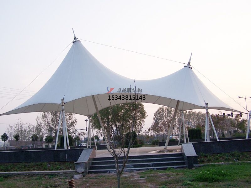 膜結構可實現(xiàn)大跨度 ,膜材較薄 ,可任意彎曲形成曲面 。 這就給了設計師廣闊的空間來發(fā)揮他們的想象力,打破傳統(tǒng)建筑純直線的桎梏 ,使得他們能夠更加隨心所欲地表達 自己的想法。膜結構的建筑因此具有外形自由而流暢 ,以曲面為主,色彩斑斕,造型變化豐富 ,充滿結構之美等特點 ,其展示語言和展示手法異常豐富 ,充滿創(chuàng)造力和藝術性 。這就使得膜結構在景觀領域的應用范圍更加廣闊 。膜結構不僅可以做供 小區(qū)居民遮風避雨 、休憩活動的小品 ,滿足人們戶外活動的需求 ,而且當它與城市風景 、園林風景等不同類型的景觀結合時 ,能獲得不同的景觀效果 。 特別的是 ,它的造型可變而隨機,可利用在地形復雜的山地公園或街道建造一些步行的廊道和休憩涼亭。 或是應用于密閉性可變的場所 ,例如停車場 、游泳池 、步行街等 ,可以根據(jù)天氣或需求的變化而改變其閉合狀態(tài) ,例如由全封閉改為半封閉等 。