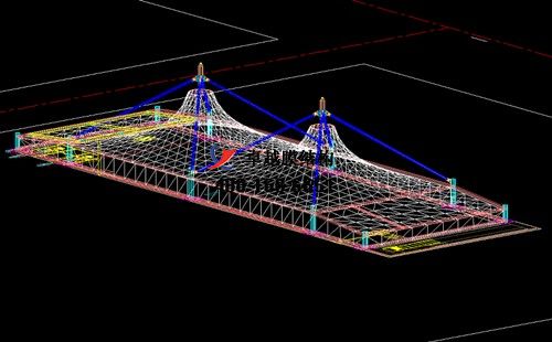 本工程膜材采用白色高端國(guó)產(chǎn)星益達(dá)PVDF高自潔環(huán)保建筑膜材,鋼結(jié)構(gòu)采用更好的標(biāo)準(zhǔn)Q235B鋼材,表面采用酚醛底漆處理,面漆采用白色鋼結(jié)構(gòu)專(zhuān)用快干磁漆。