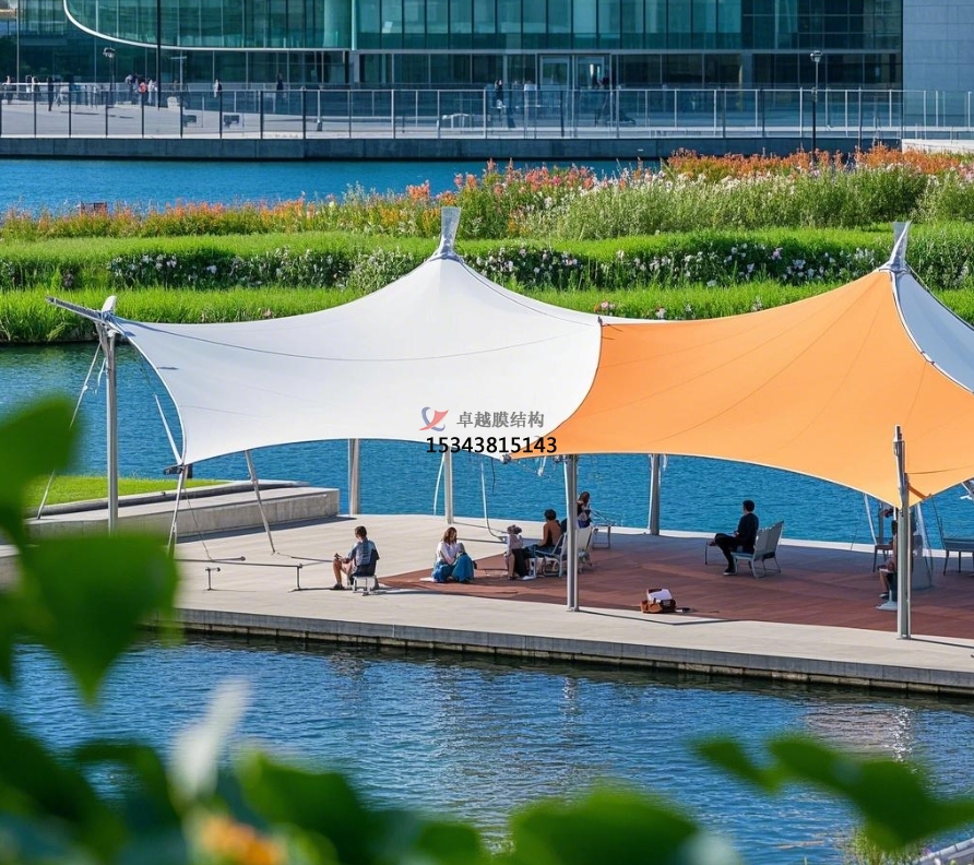 在廣場和公園中,膜結(jié)構(gòu)常被設(shè)計成各種休憩遮陽設(shè)施,如亭子、廊架等。膜結(jié)構(gòu)亭子造型別致,不僅能為人們提供遮陽避雨的空間,其獨特的外觀還能成為一道亮麗的風(fēng)景線。人們可以在亭中休息、聊天,享受片刻的寧靜。膜結(jié)構(gòu)廊架則沿著道路或景觀帶設(shè)置,為行人提供了一條舒適的步行通道,同時,廊架上還可以種植一些攀爬植物,隨著植物的生長,與膜結(jié)構(gòu)相互交織,形成一個綠色的生態(tài)廊道,既美觀又實用。