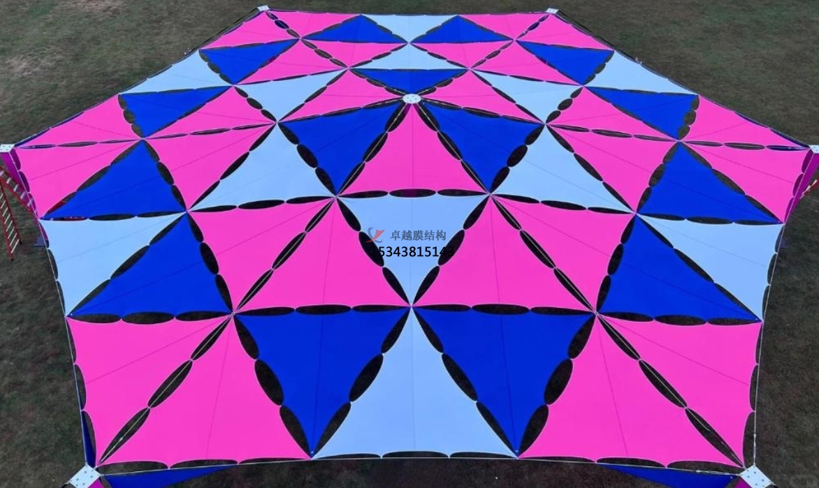 膜材具有一定的透光性,這為膜結(jié)構(gòu)帶來了光與影的奇妙變化。白天,陽光透過膜材,在地面上投射出柔和的光影,形成一片片斑駁陸離的圖案,為廣場和公園增添了幾分詩意。人們行走在光影之中,感受著陽光的輕撫,仿佛置身于夢幻的世界。夜晚,通過精心設(shè)計的燈光系統(tǒng),膜結(jié)構(gòu)又搖身一變,成為光的藝術(shù)作品。燈光從內(nèi)部或外部照射,使膜結(jié)構(gòu)呈現(xiàn)出五彩斑斕的色彩,照亮了城市的夜空,吸引著人們的目光,為城市的夜晚增添了獨特的魅力。