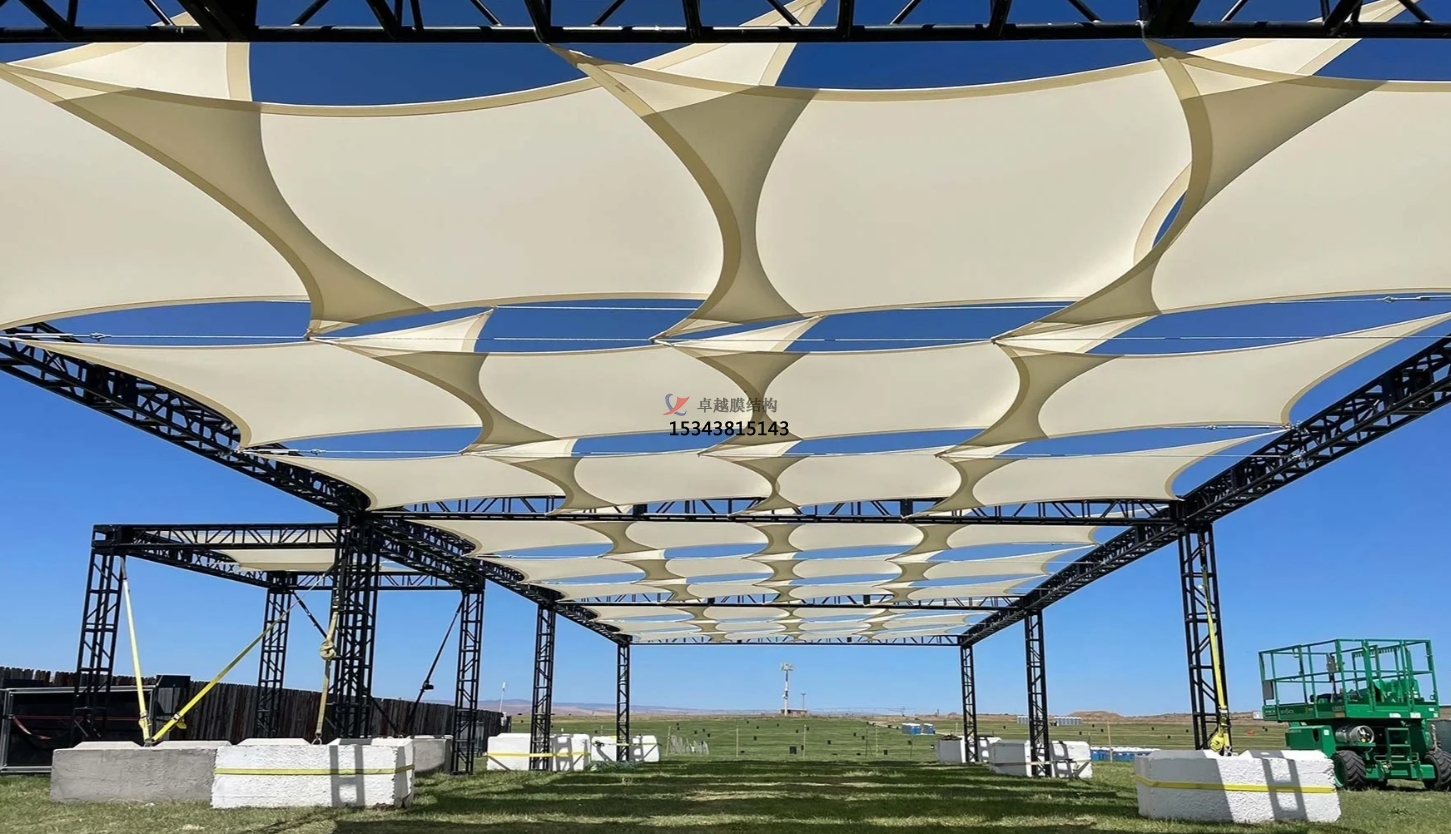 膜結(jié)構(gòu)具有出色的環(huán)境融合性。在公園的自然環(huán)境中,白色的膜材與翠綠的樹木、湛藍的天空相互映襯,相得益彰。它不會突兀地破壞自然景觀,反而像自然生長出來的一部分,巧妙地融入其中。在廣場這樣的城市空間,膜結(jié)構(gòu)又能結(jié)合周邊的建筑風(fēng)格,以現(xiàn)代感十足的造型為城市增添活力,成為城市景觀的有機組成部分。無論是在古典風(fēng)格的廣場周邊,還是在充滿現(xiàn)代氣息的公園內(nèi),膜結(jié)構(gòu)都能找到與之契合的設(shè)計方案,和諧共生。