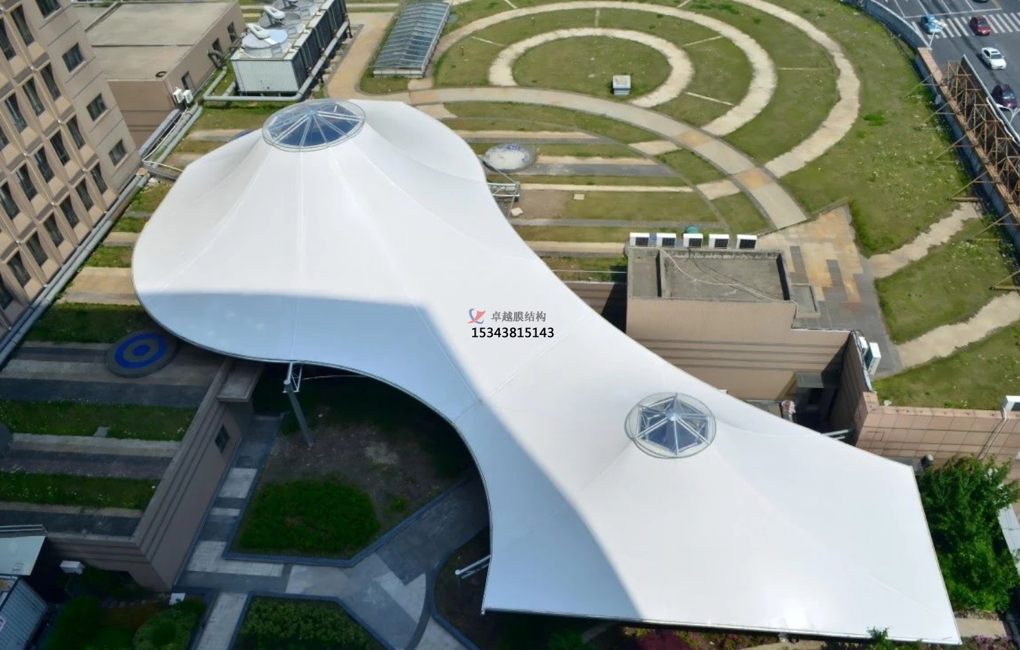 膜結(jié)構(gòu)屋頂材料通常使用PTFE、PVDF及ETFE膜材料,其中ETFE膜材因透光度能達(dá)到95%-100%,如玻璃般通透,白天無需額外照明,大大節(jié)約了能耗,故而受到很多建筑師的采用。