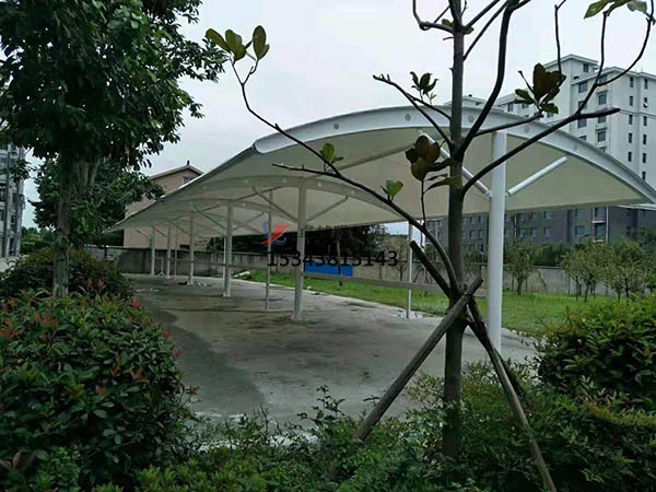 膜結(jié)構(gòu)車棚,是以建筑織物,即膜材料為張拉主體,與支撐構(gòu)件或拉索共同組成的結(jié)構(gòu)體系,它以其新穎獨特的建筑造型,良好的受力特點——成為大跨度空間結(jié)構(gòu)的主要形式之一。膜材料是指聚酯纖維基布或PVDF、PVF、PTFE等不同的表面涂層,配以優(yōu)質(zhì)的PVC組成的具有穩(wěn)定的形態(tài),并可承受一定載荷的建筑紡織品。它的壽命因不同的表面涂層而異,一般可達成10-20年。