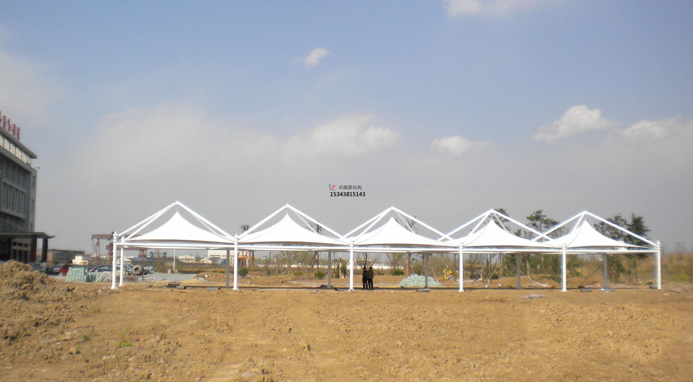 膜結(jié)構(gòu)建筑,在建筑行業(yè)引起了不小的轟動。在隨后的幾十年,建筑景觀膜結(jié)構(gòu)遮陽棚得到了迅猛的發(fā)展。景觀膜結(jié)構(gòu)遮陽棚大部分由 鋼材和索構(gòu)成,另外與結(jié)構(gòu)相結(jié)合的膜材也逐漸走向功能化、智能化。膜材具有造型輕巧自由、美觀;透光、節(jié)能、環(huán)保,優(yōu)良的阻燃性能;防污自潔性能;安全、 壽命長等優(yōu)點?;谶@些優(yōu)點,建筑膜材脫穎而出,景觀膜結(jié)構(gòu)遮陽棚被稱為“21世紀的建筑”,應用于大型體育場館、入口廊道、購物場、娛樂場、停車場、展覽會場、植物觀光園等建筑。
