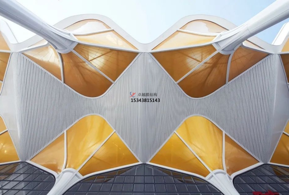ETFE膜結(jié)構(gòu)將內(nèi)部構(gòu)造徐徐展現(xiàn),猶如樹(shù)葉紋理,使建筑空間生動(dòng)而富有生命力。夜間車(chē)站則通過(guò)設(shè)置于膜結(jié)構(gòu)腔體內(nèi)的 LED燈點(diǎn)亮形成一個(gè)發(fā)光體,像一支明亮“燈籠”,照亮旅客回家的路。