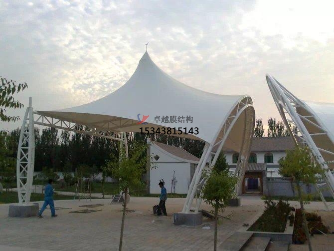 (1)A類景觀膜結(jié)構(gòu)遮陽棚材料是玻璃纖維布基上敷聚四氟乙烯樹脂(PTFE),這種景觀膜結(jié)構(gòu)遮陽棚材料的化學(xué)性能極其穩(wěn)定,使用壽命達25年以上,為不燃材料。