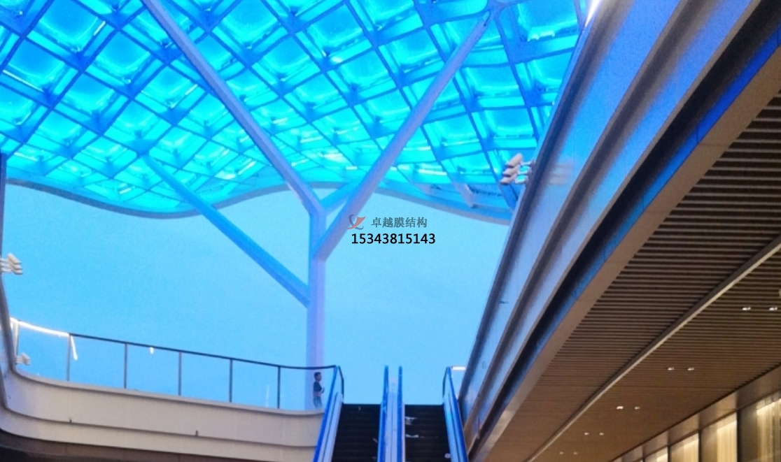 杭州銀泰廣場的波浪形ETFE天幕,白天透光率達(dá)40%以上,減少人工照明需求;夜晚結(jié)合LED燈光系統(tǒng),形成動態(tài)光影藝術(shù)場景‌。