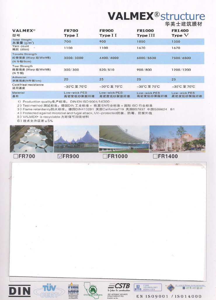 德國MEHLERHAKU米樂公司擁有165年(1837年—2003年)的制造業(yè)經(jīng)驗。 通過ISO9001質(zhì)量體系認證。所有產(chǎn)品均經(jīng)過嚴格的DIN德 國工業(yè)標(biāo)準(zhǔn),以及各個更好的的膜材工業(yè)標(biāo)準(zhǔn)。2002年,德國米樂公司獲聘為中華人民共和國建設(shè)部《索膜建筑結(jié)構(gòu)制品》行業(yè)標(biāo)準(zhǔn)編制委員成員。 德國米樂的產(chǎn)品系列涵蓋環(huán)保等各種PVC膜材領(lǐng)域,包括:建筑工程、輕型結(jié)構(gòu)、廣告、遮陽、汽艇、軍用、裝飾、水利環(huán)保,等等。