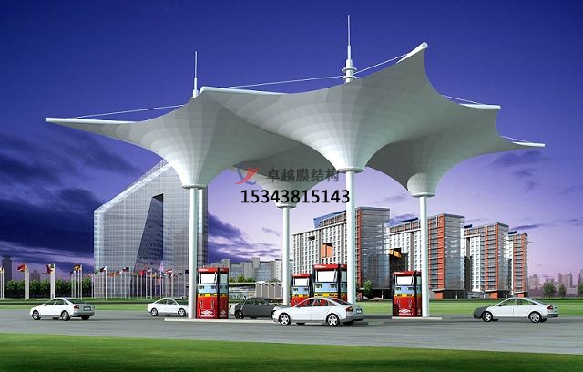 加油站膜結(jié)構(gòu),一般是指安裝在加油站的膜結(jié)構(gòu)頂棚。膜結(jié)構(gòu)頂棚因其自重輕,具有良好的受力特點(diǎn),所以成為大跨度空間結(jié)構(gòu)的主要形式之一,加油站膜結(jié)構(gòu)也屬于其范疇。