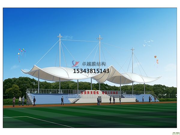 素膜結(jié)構(gòu)是依靠膜自身的張拉應(yīng)力與支撐桿和拉索共同構(gòu)成機(jī)構(gòu)體系。張拉膜結(jié)構(gòu)特別適合用來建造城市標(biāo)志性建筑的屋頂,如體育與娛樂性場(chǎng)館,需有廣告效應(yīng)的商場(chǎng)、餐廳等。城市的交通樞紐是城市命脈的關(guān)鍵性建筑,使用功能要求建筑物各組成單元的標(biāo)志明確。這類建筑越來越多采用膜結(jié)構(gòu)。