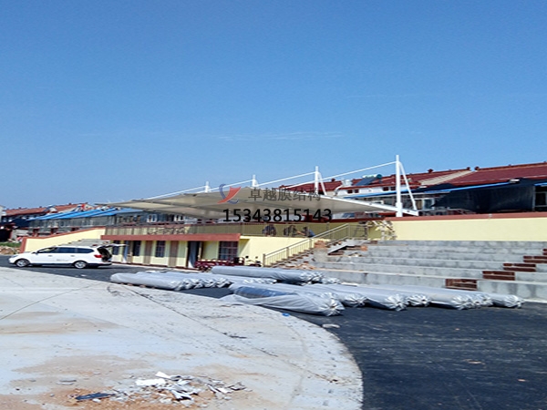 四、膜結(jié)構(gòu)建筑的膜材表面需清洗、打掃時(shí),工人忌穿硬底鞋直接接觸表面,需穿軟底無釘?shù)男夏?,避免金屬物體及其他尖硬物體劃傷或磨刮膜結(jié)構(gòu)建筑的膜表面。