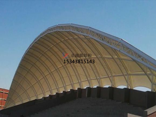 如遮陽篷的剪裁設計清楚地表現(xiàn)出漏斗狀傘頂?shù)脑煨?,其圖案還具有典型的穆斯林建筑風格,有很強的裝飾效果。位于吉隆坡的馬來西亞更好的體育中心游泳館膜頂剪裁設計更具裝飾性。拼縫整體上是流暢的曲線,其間點綴著幾個巨大的花形圖案,而花心處恰恰是膜面的支點?;ǘ鋱D案的拼縫設i一十既明確表達了其受力關系,也有助動了解膜面的整體形態(tài)。頂棚的整體效果猶如流動的水面上浮著幾朵花瓣,跳動的圖案給室內(nèi)帶來歡快的氣氛。