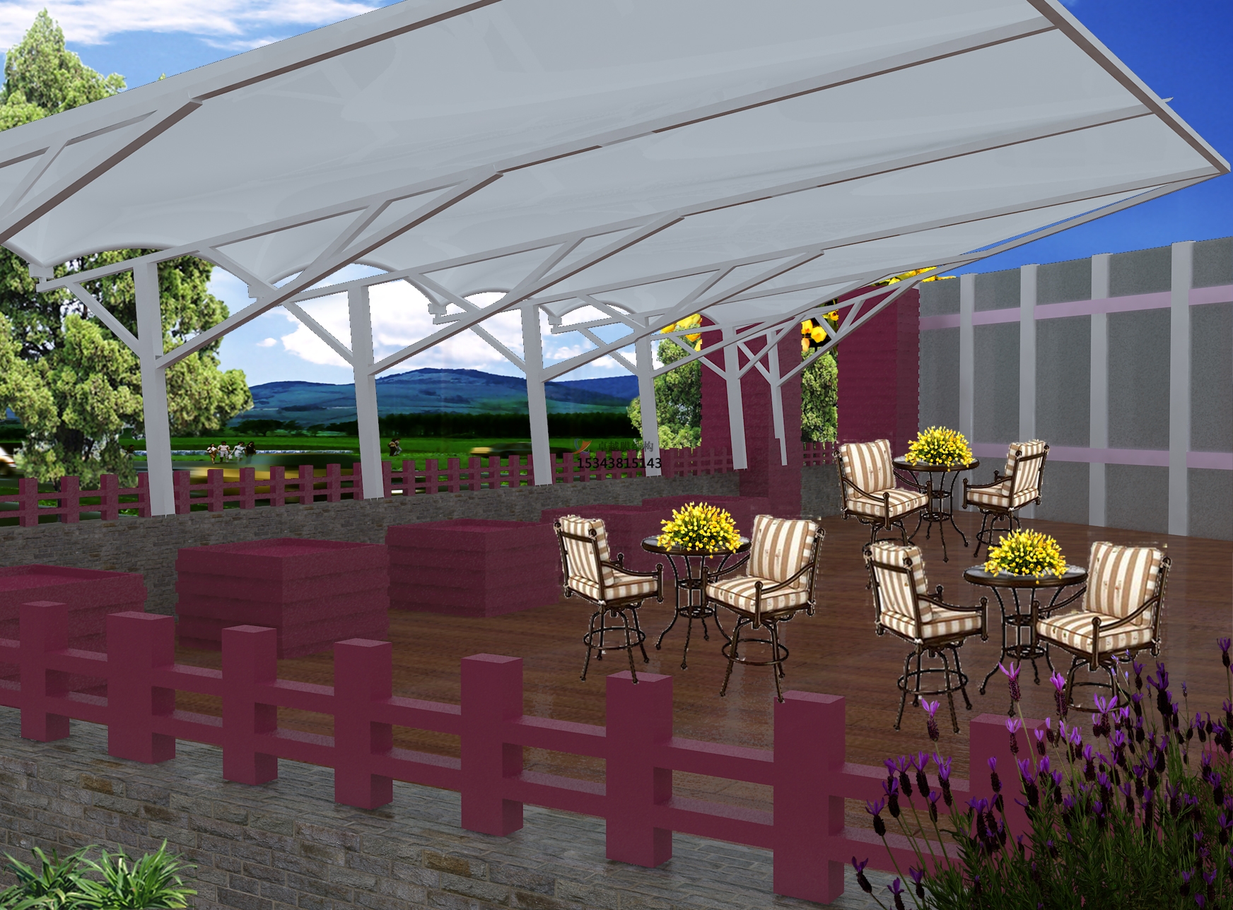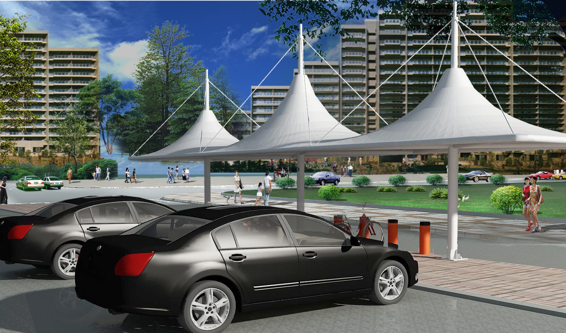 2、一個城市的中心區(qū)反映一個城市的地理風(fēng)貌和民族風(fēng)情,同時,也是一個城市文化發(fā)展程度的標(biāo)志。而景觀設(shè)計要求其具有廣泛的可讀性、雅俗共賞,既有超凡脫俗的藝術(shù)價值,又能使大眾喜聞樂見與大眾息息相通。張拉膜以其輕盈飄逸的造型、柔美并帶有力量的曲線和大跨度和大空間的鮮明個性和標(biāo)識性,應(yīng)用于城市小品設(shè)計中。
