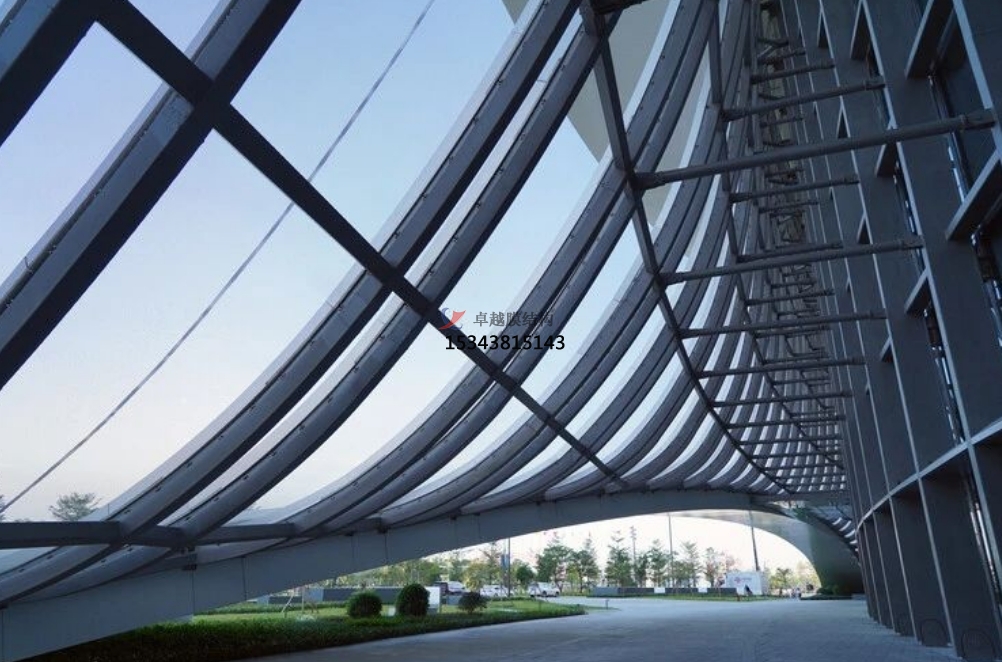 在與單向鋼索垂直的方向設(shè)置鋼梁,并在梁和索交叉的位置設(shè)置支座以約束鋼索的位移,這種結(jié)構(gòu)形式被稱為單層 ETFE 加含跨中支座的單向鋼索結(jié)構(gòu)。通過設(shè)置跨中支座,可以有效地降低膜面的變形,使得膜結(jié)構(gòu)在承受荷載時能夠保持更好的形態(tài)穩(wěn)定性。同時,由于支座對鋼索的約束作用,能夠采用較小的索徑,在滿足結(jié)構(gòu)強(qiáng)度要求的前提下,進(jìn)一步降低材料成本。這種結(jié)構(gòu)形式在一些對膜面平整度要求較高的建筑項(xiàng)目中具有獨(dú)特的優(yōu)勢,如大型會議中心的屋頂設(shè)計(jì),能夠確保膜面在各種荷載條件下都能保持良好的狀態(tài),為室內(nèi)提供美觀、穩(wěn)定的空間環(huán)境。然而,該結(jié)構(gòu)形式在設(shè)計(jì)和施工過程中,需要對支座的布置和連接方式進(jìn)行精心設(shè)計(jì),以確保其能夠有效地發(fā)揮約束作用。
