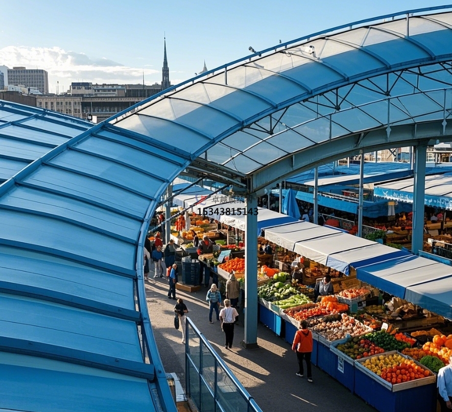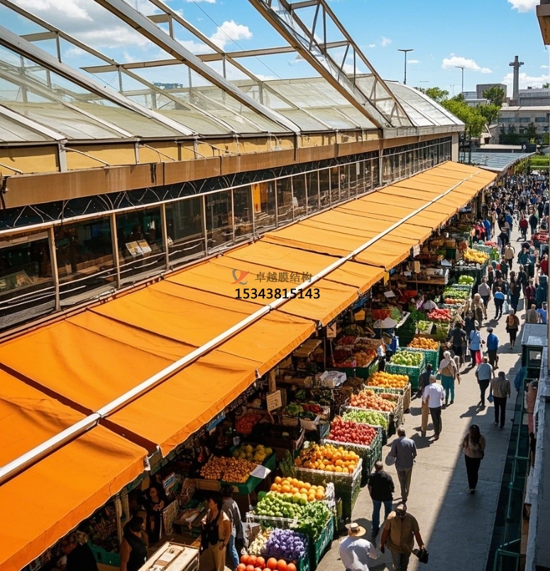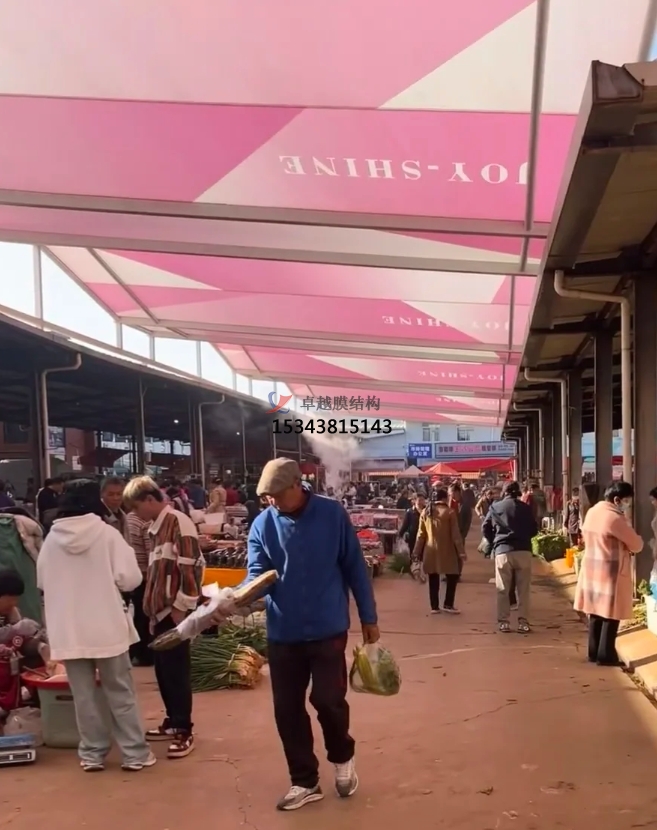 城市中心傳統(tǒng)農(nóng)貿(mào)市場(chǎng)改造:在城市核心區(qū)域,土地資源緊張,傳統(tǒng)農(nóng)貿(mào)市場(chǎng)設(shè)施陳舊、空間局促。膜結(jié)構(gòu)改造方案通過(guò)拆除原有老舊頂棚,搭建輕巧、美觀的膜結(jié)構(gòu)頂棚,能在不增加過(guò)多占地面積的情況下,優(yōu)化市場(chǎng)空間,提升采光、通風(fēng)效果,改善購(gòu)物環(huán)境,同時(shí)保留傳統(tǒng)市場(chǎng)的煙火氣,讓城市記憶與現(xiàn)代功能完美融合,如北京的部分老城區(qū)農(nóng)貿(mào)市場(chǎng)改造項(xiàng)目,就借助膜結(jié)構(gòu)實(shí)現(xiàn)了華麗轉(zhuǎn)身,重新煥發(fā)生機(jī)。