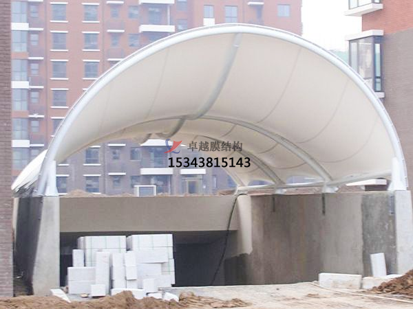 濮陽地下車庫入口膜結(jié)構(gòu)案例位于濮陽市濮東新區(qū),該地下車庫入口采用了張拉膜結(jié)構(gòu),由主膜和支膜組成。主膜采用高強(qiáng)聚酯纖維材料,支膜采用聚乙烯材料。整個(gè)膜結(jié)構(gòu)造型優(yōu)美,外觀時(shí)尚現(xiàn)代,同時(shí)具有防水、防曬、耐久等優(yōu)良性能。在施工過程中,由于地下車庫入口膜結(jié)構(gòu)面積較大,需要采用大型機(jī)械設(shè)備進(jìn)行施工。同時(shí),由于膜結(jié)構(gòu)的跨度較大,需要采用專業(yè)的施工技術(shù)和方案,確保施工質(zhì)量和安全。