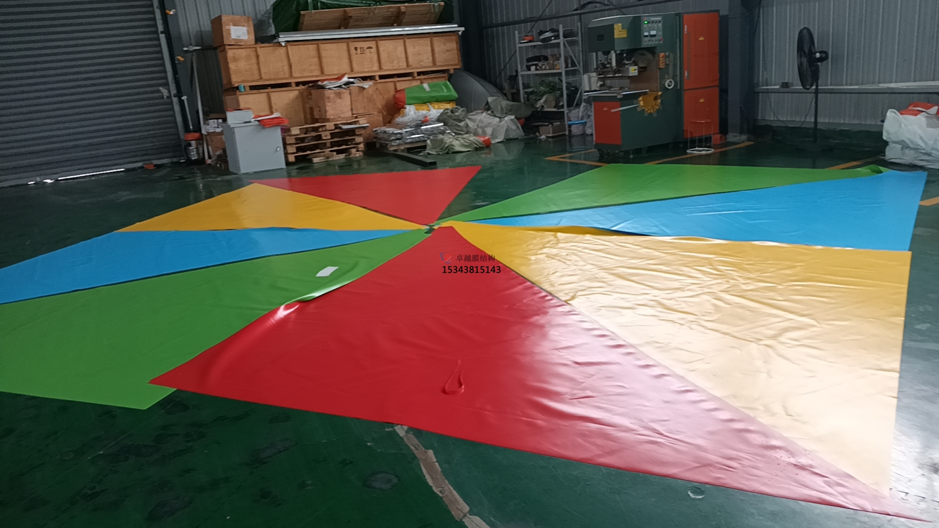 2、裁剪:膜材料的裁剪是膜結(jié)構(gòu)加工的第一步。由于膜結(jié)構(gòu)通常是空間曲面,裁剪就是用平面膜材料表示空間曲面。這一步需要非常高的精度,以確保后續(xù)工序的順利進(jìn)行。