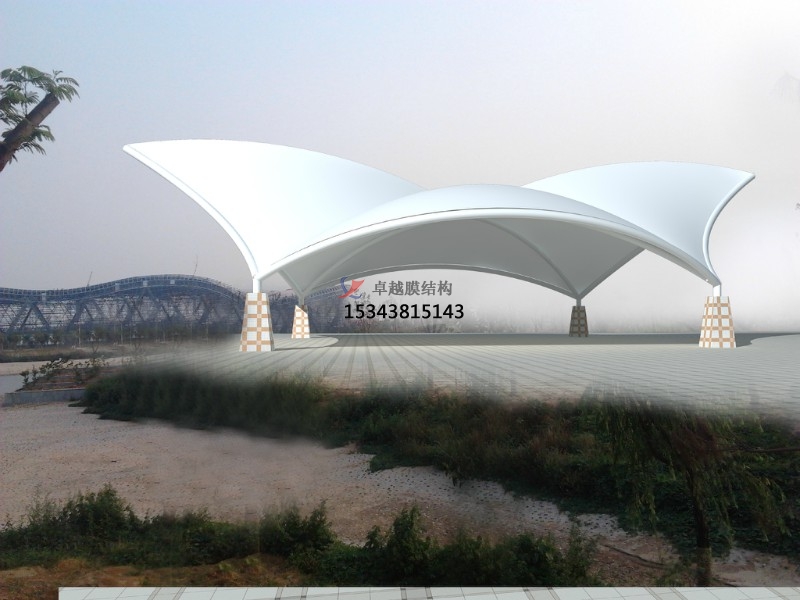 近年來,隨著建筑空間觀念的日益深化以及科學(xué)手段的不斷提高,膜結(jié)構(gòu)已是現(xiàn)代建筑環(huán)境學(xué)發(fā)展的主流。它可以構(gòu)成單曲面,多曲面等不同建筑結(jié)構(gòu)形式,滿足了建筑師們對(duì)建筑與美學(xué)高度統(tǒng)一的要求。 由于膜材的光透性,白天陽光可以透過膜材形成漫射光,使舞臺(tái)下如同自然,能很好地節(jié)約能源。夜間彩燈打射形成的絢爛景觀也讓市民體驗(yàn)到不一樣的感覺。膜材具有防水 性和遮陽效果,而不受到日曬雨淋,因此膜結(jié)構(gòu)舞臺(tái)能創(chuàng)造出與自然環(huán)境相媲美的空間形式。