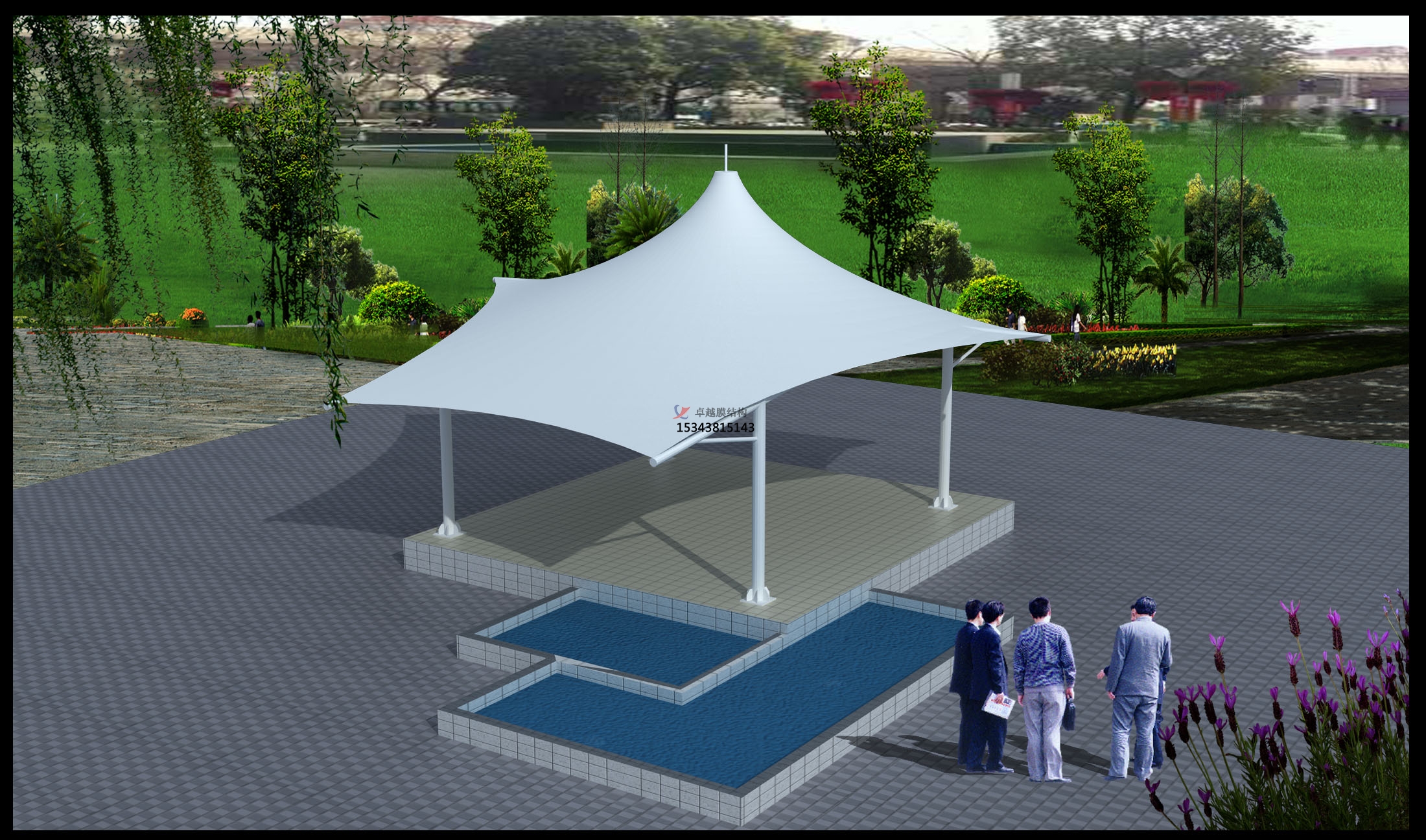 由于膜結(jié)構(gòu)景觀棚造型結(jié)構(gòu)的自身特性,其可以滿(mǎn)足從簡(jiǎn)單遮陽(yáng)結(jié)構(gòu)到功能復(fù)雜的大型建筑等許多不同的建筑功能要求,并形態(tài)極具表現(xiàn)力且對(duì)于有些功能要求只有它才是更為適合的。具有特定功能的建筑都可通過(guò)立意得以表達(dá),膜結(jié)構(gòu)景觀棚獨(dú)特造型體現(xiàn)了建筑自身的自然美感。