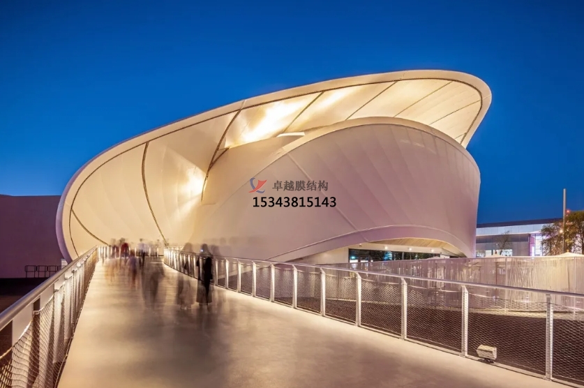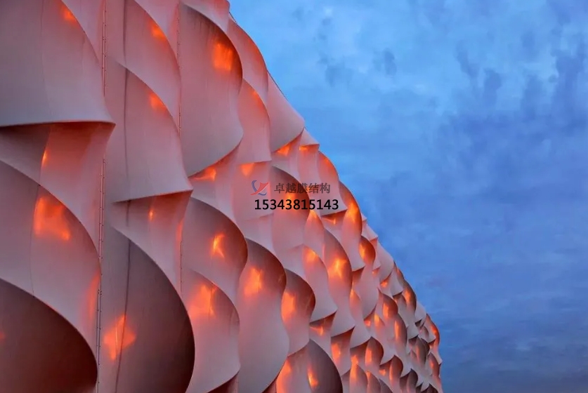 膜結(jié)構(gòu)建筑是21世紀(jì)最具代表性和前景的建筑形式之一,它打破了純線性建筑風(fēng)格的格局,以其獨(dú)特優(yōu)美的曲線形狀, 呈現(xiàn)出柔和的力量美感,同時(shí)賦予設(shè)計(jì)師更多的想象力和創(chuàng)作空間。