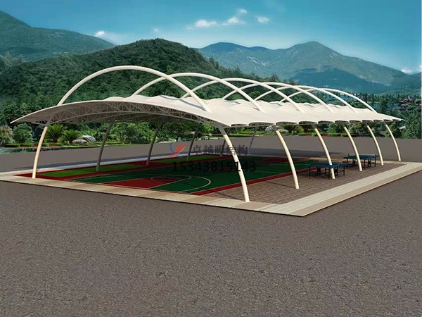 在籃球場張拉膜罩棚維護中,卓越針對膜結(jié)構(gòu)延長使用壽命的建議,首先要控制使用頻率,避免在膜罩棚下進行劇烈撞擊運動(如籃球架碰撞膜材),禁止攀爬或懸掛重物。然后還需設(shè)置防護措施,在膜材易接觸部位(如入口處)安裝防護墊或警示標識,防止人為刮擦。定期進行性能評估,使用滿5年后,每2-3年進行一次膜材老化檢測;達到設(shè)計使用年限(通常15-20年)后,全面評估結(jié)構(gòu)安全性,決定是否翻新或更換。通過科學的維護管理,張拉膜罩棚可保持良好的使用狀態(tài),同時降低突發(fā)故障風險。若發(fā)現(xiàn)異常情況(如膜面嚴重積水、結(jié)構(gòu)異響),應(yīng)立即停止使用并尋求專業(yè)支持。