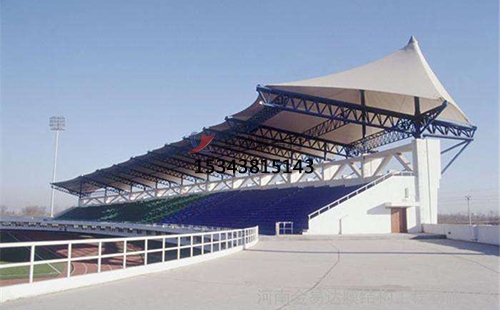 記錄好所有有控制要求的張力值,對(duì)無(wú)控制要求的也要做好行程記錄.膜結(jié)構(gòu)體育場(chǎng)看臺(tái)安裝過(guò)程中,在膜面展開(kāi)之前,建議要先將緊固的夾板安裝好,膜結(jié)構(gòu)看臺(tái)廠家,夾板的間距要在2米以?xún)?nèi),夾板的中心間距根據(jù)膜材料跨度的大小來(lái)調(diào)整,須擰緊夾板上的螺母、螺栓. 膜結(jié)構(gòu)體育場(chǎng)看臺(tái)的谷索和脊索以及其錨頭組裝的安裝應(yīng)該遵循施工設(shè)計(jì)的要求進(jìn)行.須將谷索、 脊索擴(kuò)張到相應(yīng)的位置.
