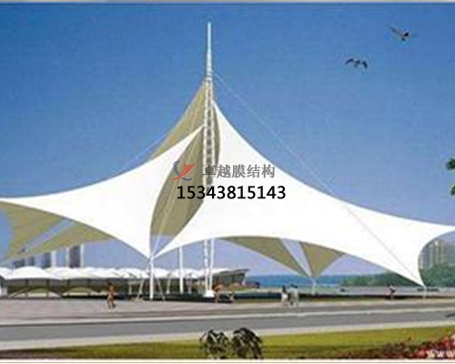 膜結(jié)構(gòu)雨棚是一種全新的建筑結(jié)構(gòu)形式,它集建筑學(xué)、結(jié)構(gòu)力學(xué)、精細(xì)化工與材料科學(xué)、計(jì)算機(jī)技術(shù)等為一體,具有很高技術(shù)含量。其曲面可以隨著建筑師的設(shè)計(jì)需要任意變化,結(jié)合整體環(huán)境,建造出標(biāo)志性的形象工程。