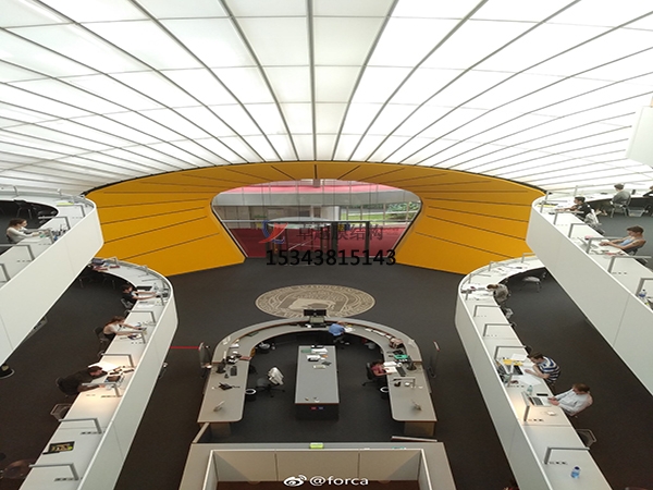 膜結(jié)構(gòu)看臺(tái)用于大型封閉建筑。為了解決建筑保溫、隔熱、隔音和結(jié)露問題,一般采用雙層膜結(jié)構(gòu)體系和防結(jié)露劑來減弱這方面的影響,但也只能減弱,并不能完全解決。