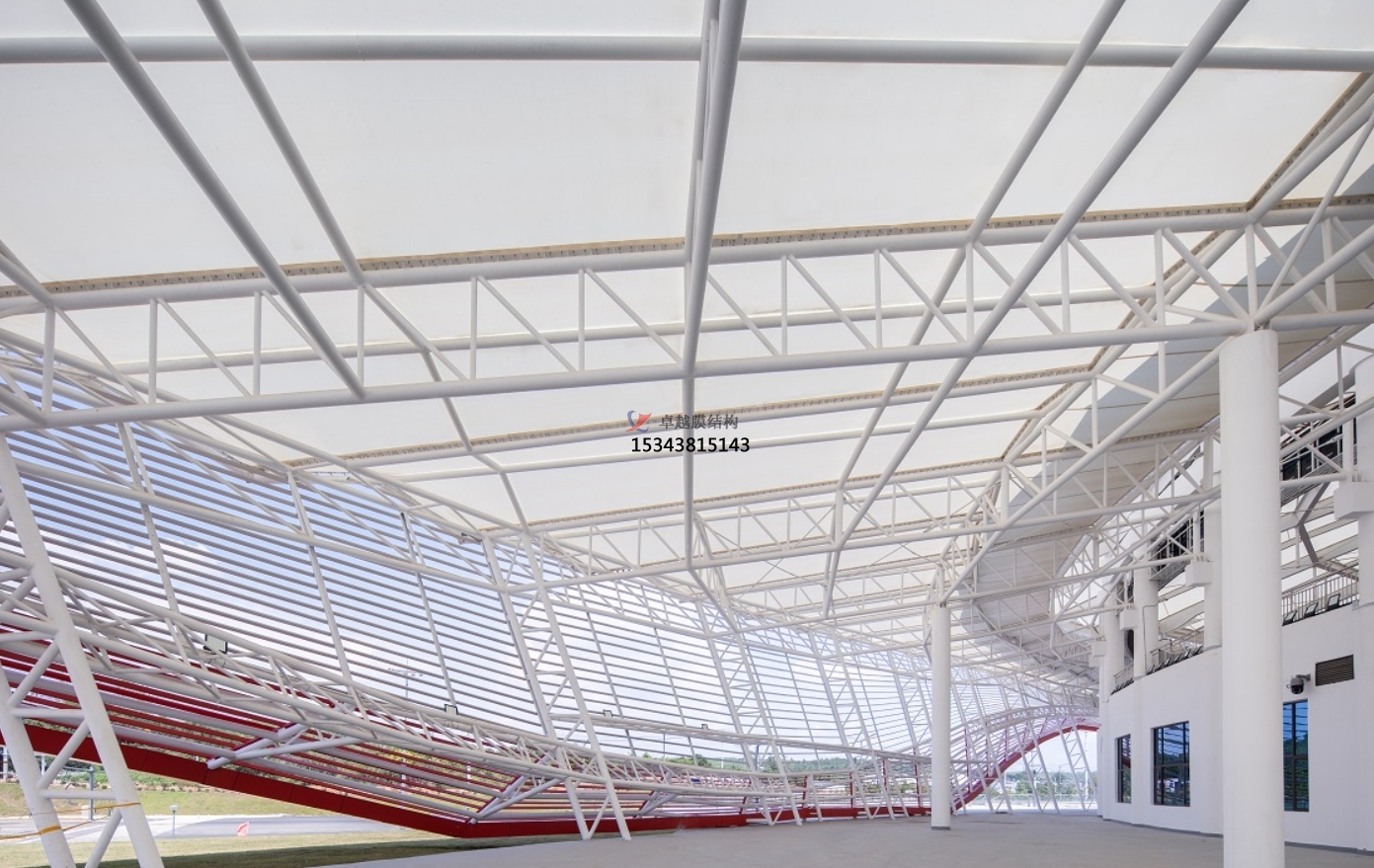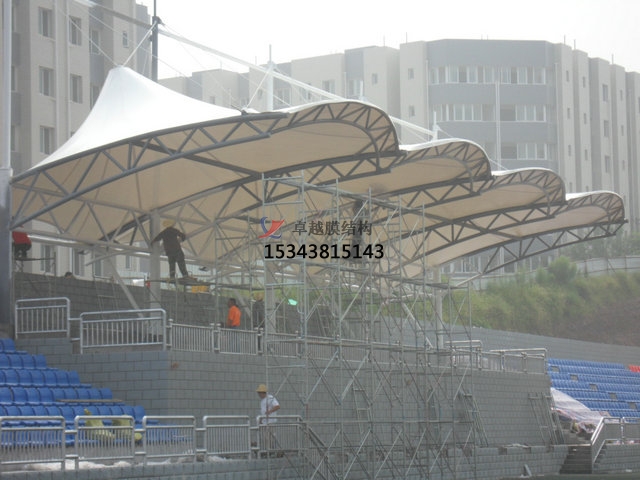 膜結(jié)構(gòu)看臺(tái)采用高強(qiáng)度膜材料和可靠的連接方式,具有較高的安全性。在極端天氣或意外情況下,膜材料具有一定的承載能力和抗風(fēng)能力,能夠保證觀眾的安全。