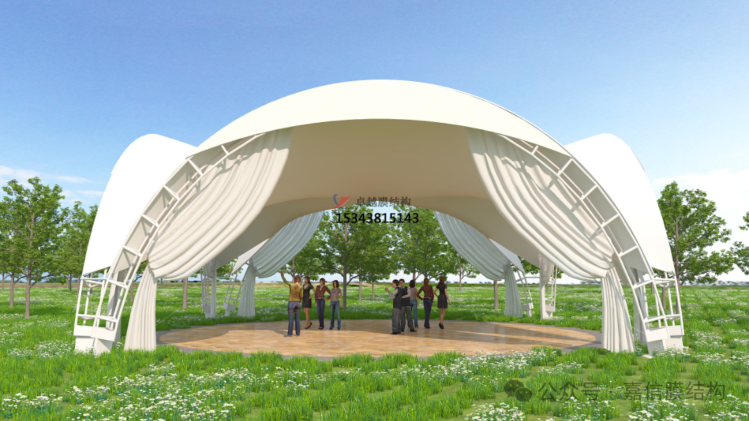 ?。和ㄟ^專用的張拉設(shè)備,如千斤頂、手拉葫蘆等,對(duì)膜材進(jìn)行張拉。張拉過程中要按照設(shè)計(jì)要求的拉力和順序進(jìn)行,逐步調(diào)整膜材的張力,使其達(dá)到設(shè)計(jì)的形狀和預(yù)應(yīng)力狀態(tài)。在張拉過程中,要使用測(cè)量儀器實(shí)時(shí)監(jiān)測(cè)膜材的變形和張力情況,確保張拉均勻、準(zhǔn)確。張拉完成后,將膜材邊緣與支撐結(jié)構(gòu)進(jìn)行最終固定,如通過螺栓緊固、焊接等方式,確保膜結(jié)構(gòu)在使用過程中不會(huì)出現(xiàn)松動(dòng)或位移。