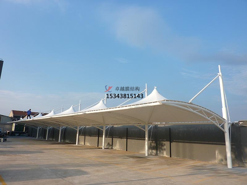 三門峽電動車充電膜結構遮陽棚是一種新型的環(huán)保節(jié)能建筑,它采用高強度膜材料作為結構支撐,具有輕便、強度高、防水、防曬、隔音、隔熱等特點。