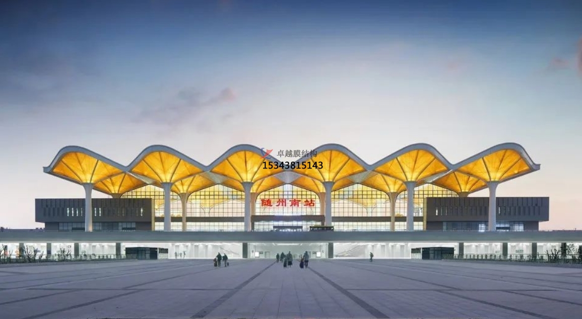 1. 隨州高鐵站‌:隨州高鐵站站房采用了膜結構設計,通過驗算不同膜材的最大適用跨度,最終選用了滿足要求的膜材方案。該站房膜結構造型獨特,既美觀又實用,成為隨州市的新地標。