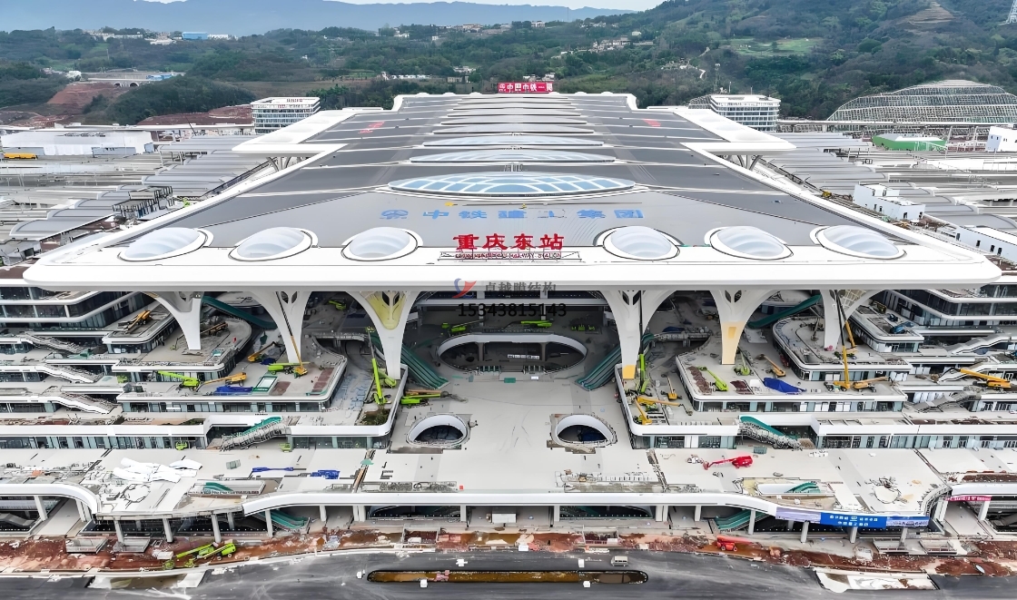 3. 重慶東站‌:正在建設的重慶東站屋蓋體系采用了“管桁架鋼結構+橢圓形天窗+樹形支撐柱+ETFE氣枕膜”形式。這種設計不僅實現(xiàn)了大跨度的覆蓋,還通過ETFE氣枕膜的應用為整個項目增添了獨特的視覺效果。
