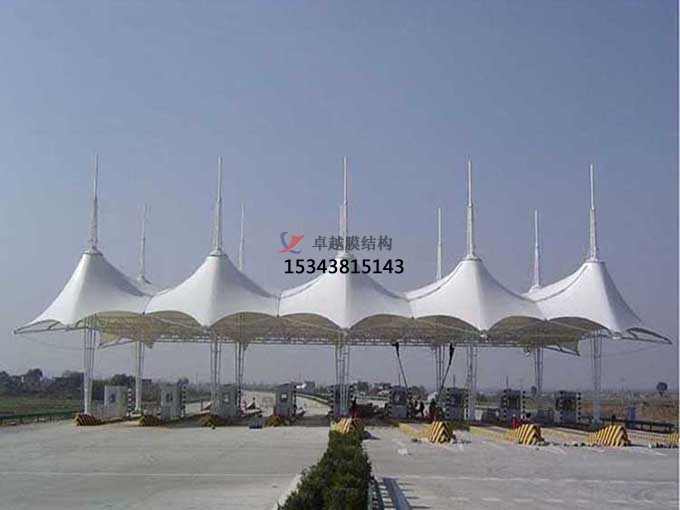高速公路收費站在城市的進(jìn)口處,規(guī)劃具有自己城市鮮明特征和文明神韻的建筑方式乃是每個城市開展的很好的選之作。而張拉膜以自己多變的特性,極具現(xiàn)代感又展示了一個城市的發(fā)展理念和思路。