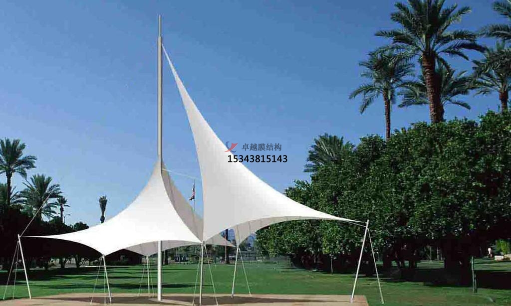5、張拉膜景觀材料的可加工性能、幅寬及張拉膜景觀建筑效果圖的膜面形狀等。