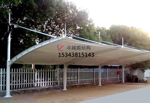 簡(jiǎn)潔大方的景觀膜結(jié)構(gòu)遮陽(yáng)棚造型非常美觀,結(jié)構(gòu)穩(wěn)固,空間的跨度大,工期比較短,自潔性、防火性能比較強(qiáng),有很好的空間美觀,對(duì)您的愛車是必備之選。