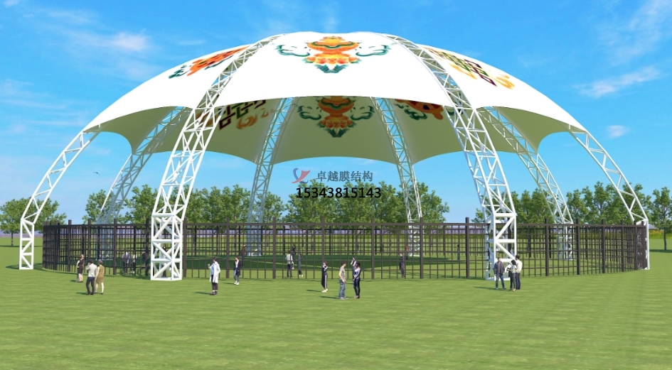 相較于一些傳統(tǒng)的建筑結(jié)構(gòu),膜結(jié)構(gòu)景觀棚由于其自身的輕巧特性,不需要龐大而厚重的支撐體系,從而能夠在有限的場(chǎng)地范圍內(nèi),最大限度地拓展出寬敞而實(shí)用的內(nèi)部空間。無論是作為休閑廣場(chǎng)上的遮陽避雨設(shè)施,還是作為公園湖畔的觀景亭,亦或是商業(yè)街區(qū)的戶外展示區(qū),膜結(jié)構(gòu)景觀棚都能以其高效的空間利用方式,滿足人們多樣化的使用需求。