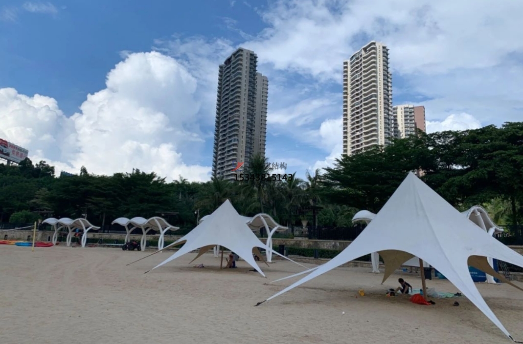 景觀棚膜結(jié)構(gòu)最大的特點(diǎn)之一就是其幾乎不受限制的造型能力。設(shè)計(jì)師可以根據(jù)不同的場(chǎng)地需求、文化背景以及功能要求,創(chuàng)造出如貝殼般優(yōu)雅的曲線、如帆船般靈動(dòng)的輪廓、如花朵般綻放的形態(tài)等等。這種獨(dú)特的造型不僅能夠成為視覺上的焦點(diǎn),提升整個(gè)區(qū)域的景觀品質(zhì),還能很好地與周圍的自然環(huán)境或建筑風(fēng)格相融合,形成和諧統(tǒng)一的整體畫面。