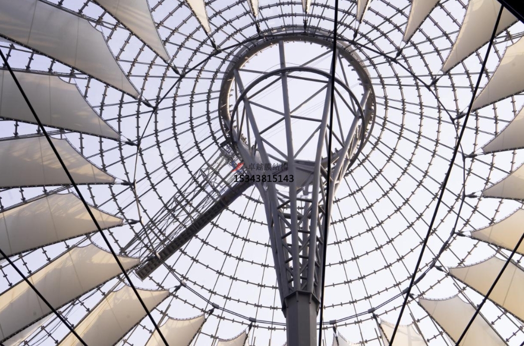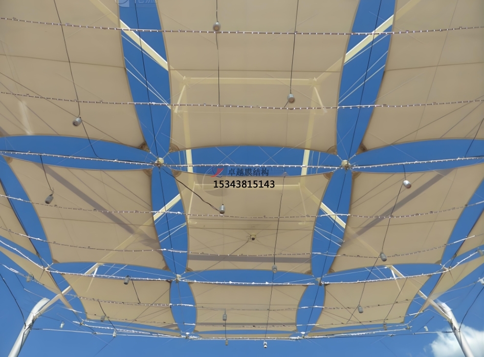 支撐體系則包括拉索、桅桿、拱等結(jié)構(gòu)部件。拉索如同整個(gè)結(jié)構(gòu)的 “筋骨”,通過(guò)合理布置,將膜材張拉至預(yù)定形狀,為膜材提供穩(wěn)定的支撐力。桅桿和拱等作為主要的豎向或曲線支撐,與拉索協(xié)同工作,共同確定膜結(jié)構(gòu)的空間形態(tài)。其原理基于力的平衡,利用膜材的張力和拉索的拉力相互作用,使整個(gè)結(jié)構(gòu)處于穩(wěn)定的受力狀態(tài),如同一張被精心張緊的巨型 “織物”,在風(fēng)中展現(xiàn)出獨(dú)特的力學(xué)美感。