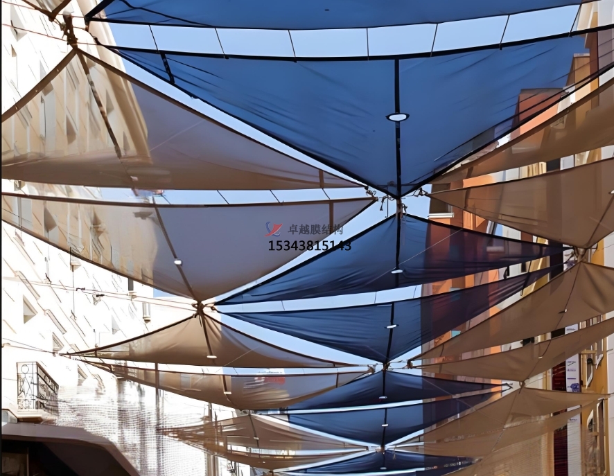 在商業(yè)領(lǐng)域,索膜結(jié)構(gòu)常被用于購(gòu)物中心、步行街的入口雨篷、中庭遮陽(yáng)等。其獨(dú)特的造型可以吸引消費(fèi)者的目光,營(yíng)造出富有活力的商業(yè)氛圍。同時(shí),膜結(jié)構(gòu)的遮陽(yáng)功能還能為顧客提供舒適的購(gòu)物環(huán)境,減少陽(yáng)光直射帶來(lái)的不適。