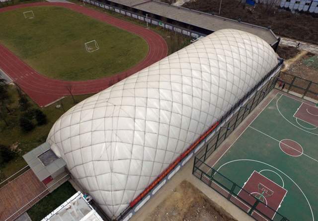4. 普通的氣膜沒有鋼纜或者只有縱橫鋼纜的加固,抗風(fēng)雪的能力弱,事故率高,不能作為永久建筑使用;只有斜向網(wǎng)狀鋼纜系統(tǒng),可以確保氣膜的抗風(fēng)雪性能,也是好的可作為永久建筑使用的氣膜。