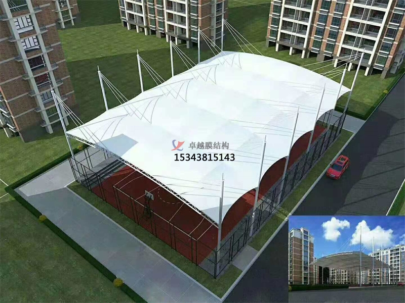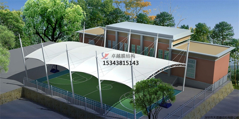 一、對于場地要求低,基本上所有籃球場地都可以做膜結構頂棚,相比混凝土結構的風雨球館,