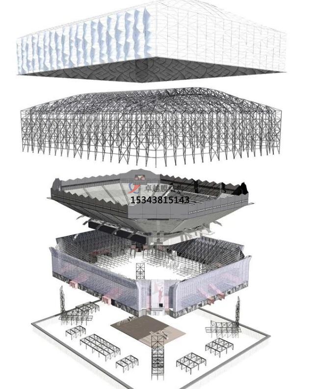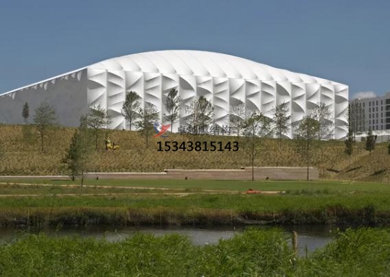 場(chǎng)館高30m,面積兩萬(wàn)平方米,外敷可收回PVC膜,膜在后面的結(jié)構(gòu)的效果下構(gòu)成美麗的崎嶇。透光的外表皮能夠使得場(chǎng)館在白天能夠十分少的依賴人工照明。